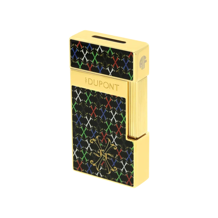 Le Ligne 2 est laqué avec un dégradé orangé, sur la face avant le logo de la prestigieuse marque de cigares Montecristo est estampillé en or sur l’une des faces, tandis que l’autre face présente un décor doré de soleil et de lune. Il dispose d’un système double flamme douce et réglable.